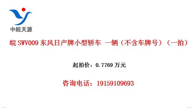 皖SWV009东风日产牌小型轿车 一辆(不含车牌号)(一拍)