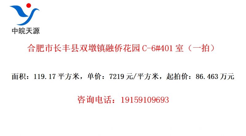 合肥市长丰县双墩镇融侨花园C-6#401室(一拍)
