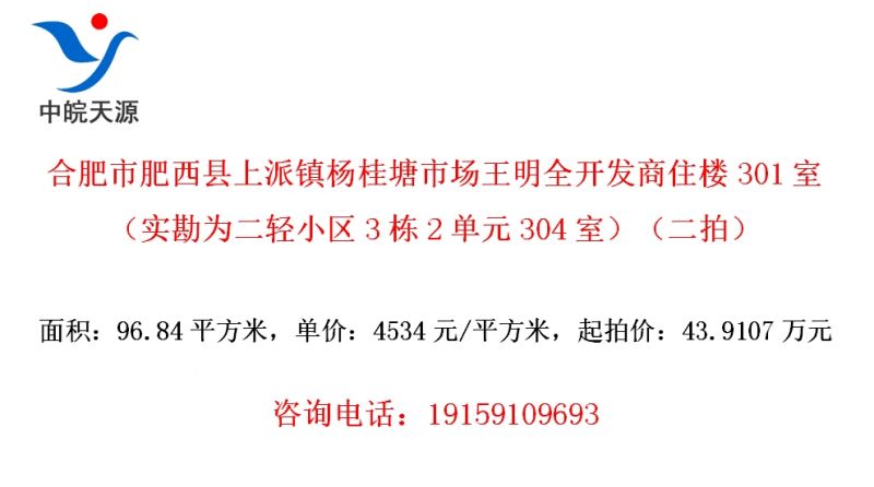 合肥市肥西县上派镇杨桂塘市场王明全开发商住楼301室(实勘为二轻小区3栋2单元304室)(二拍)