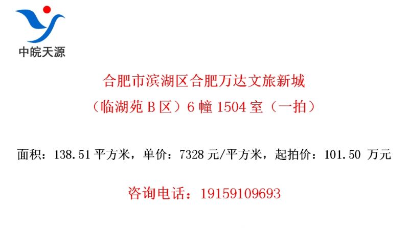 合肥市滨湖区合肥万达文旅新城(临湖苑B区)6幢1504室(一拍)