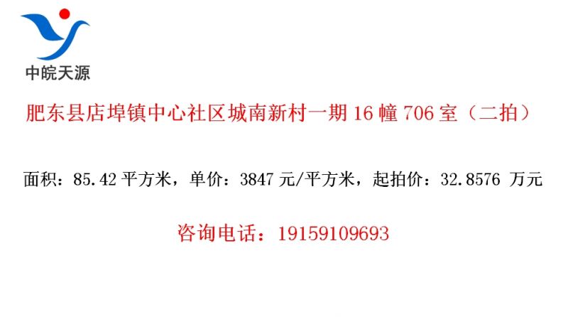肥东县店埠镇中心社区城南新村一期16幢706室(二拍)