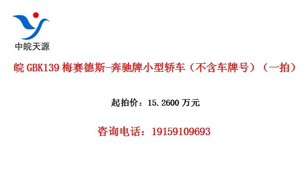 皖GBK139梅赛德斯-奔驰牌小型轿车(不含车牌号)(一拍)