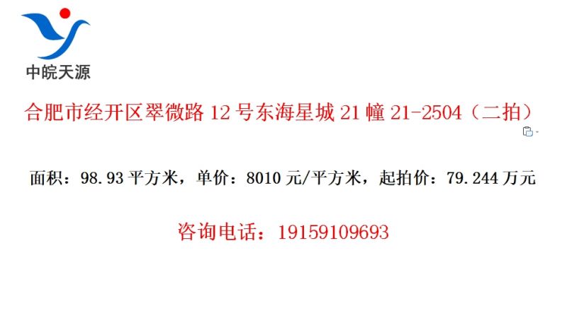 合肥市经开区翠微路12号东海星城21幢21-2504(二拍)