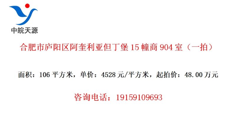 合肥市庐阳区阿奎利亚但丁堡15幢商904室(一拍)