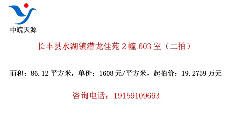 长丰县水湖镇潜龙佳苑2幢603室(二拍)