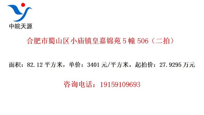 合肥市蜀山区小庙镇皇嘉锦苑5幢506(二拍)