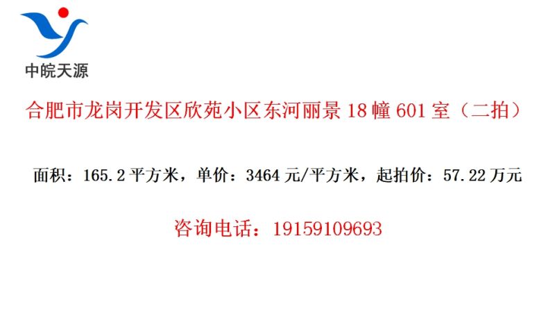 合肥市龙岗开发区欣苑小区东河丽景18幢601室(二拍)