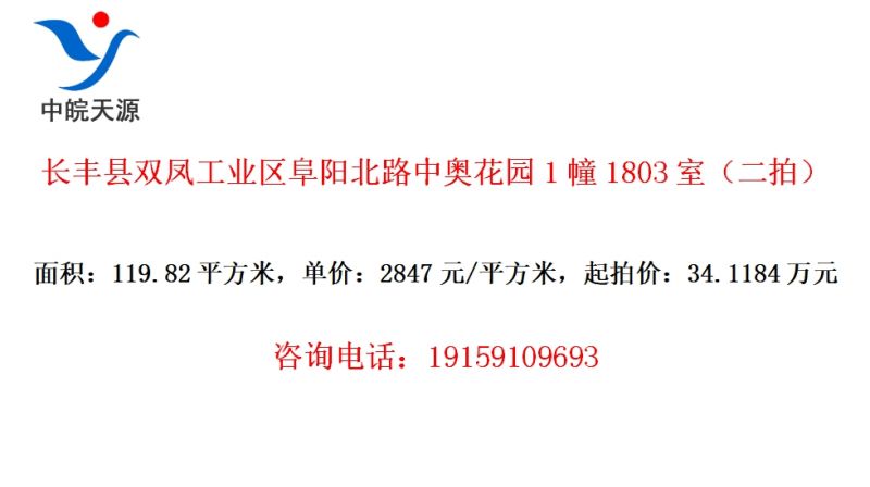 长丰县双凤工业区阜阳北路中奥花园1幢1803室(二拍)