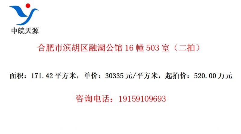 合肥市滨胡区融湖公馆16幢503室(二拍)