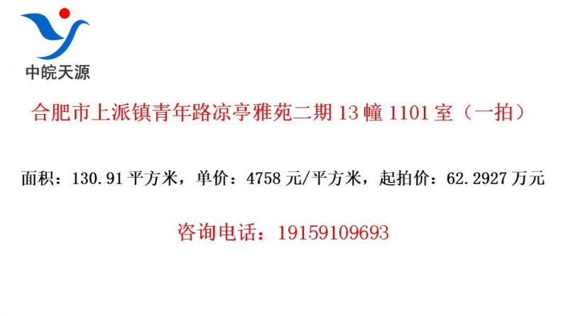 合肥市上派镇青年路凉亭雅苑二期13幢1101室(一拍)