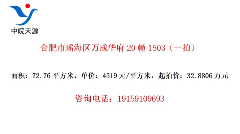 合肥市瑶海区万成华府20幢1503(一拍)