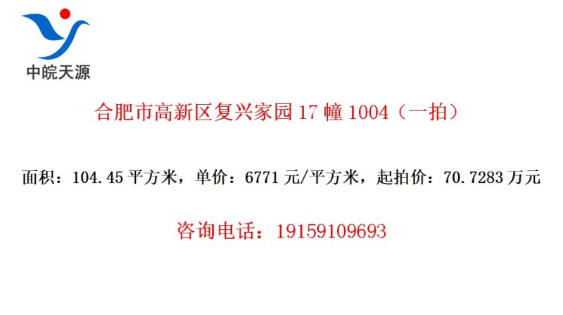 合肥市高新区复兴家园17幢1004(一拍)