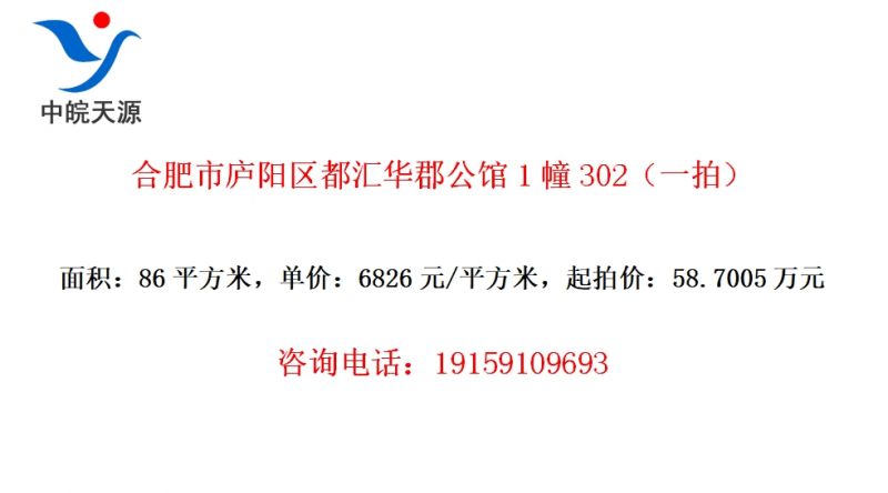 合肥市庐阳区都汇华郡公馆1幢302(一拍)