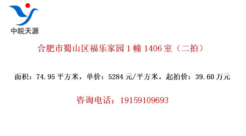 合肥市蜀山区福乐家园1幢1406室(二拍)