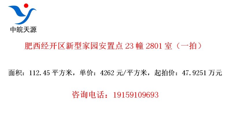肥西经开区新型家园安置点23幢2801室(一拍)