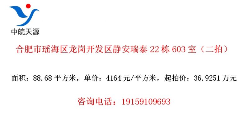 合肥市瑶海区龙岗开发区静安瑞泰22栋603室(二拍)