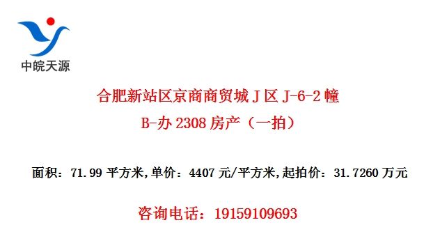 合肥新站区京商商贸城J区J-6-2幢B-办2308房产(一拍)