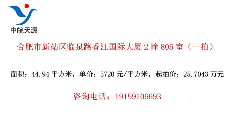 合肥市新站区临泉路香江国际大厦2幢805室(一拍)