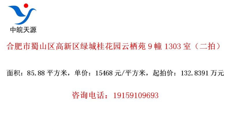 • 合肥市蜀山区高新区绿城桂花园云栖苑9幢1303室(二拍)