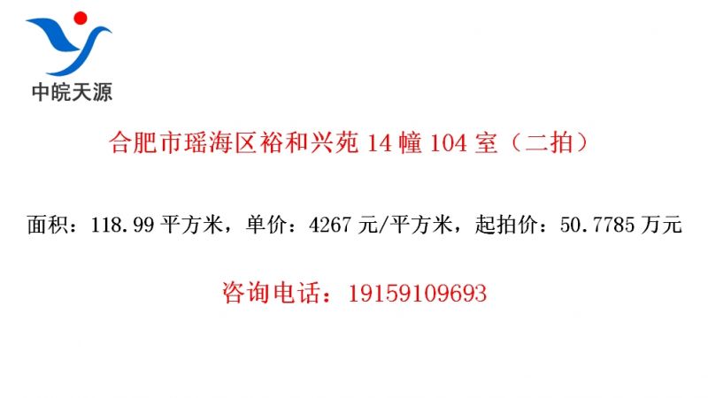 • 合肥市瑶海区裕和兴苑14幢104室(二拍)