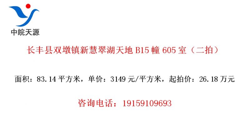 • 长丰县双墩镇新慧翠湖天地B15幢605室(二拍)
