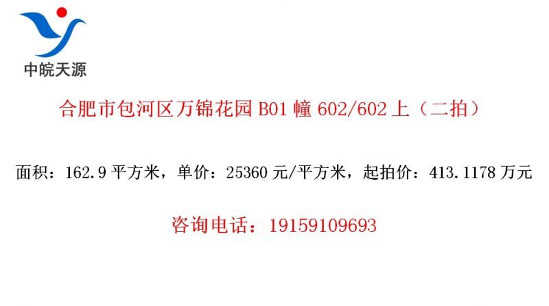 • 合肥市包河区万锦花园B01幢602/602上(二拍)