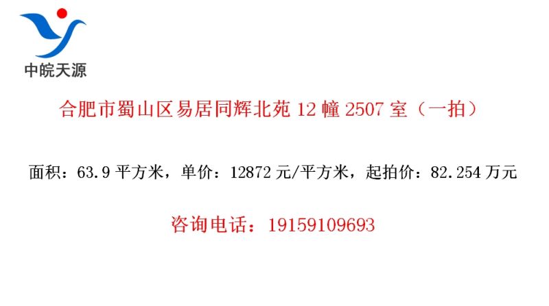 • 合肥市蜀山区易居同辉北苑12幢2507室(一拍)