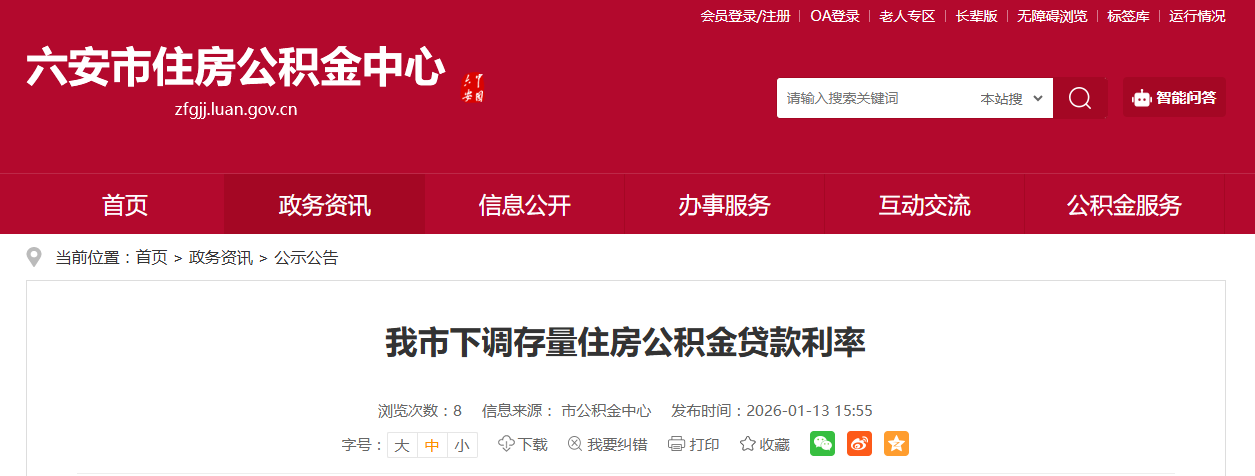 | 存量住房公积金贷款利率调整!安徽一市最新发布 |