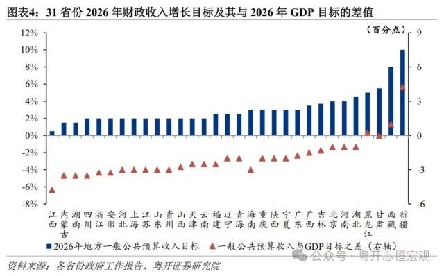 各地基于今年当地经济财政形势判断,注重实事求是、科学预测,给出稳妥的财政收入预期增速目标。 罗志恒表示,分省份看,今年广东、江苏、浙江等23个省份一般公共预算收入增长目标设定在2%至4%之间,江西、湖南、内蒙古财政收入增长目标在0.5%至2%之间,新疆、西藏等5个省份这一收入增长目标在4.5%至10%之间。 他表示,新疆采矿业表现强劲拉动财政收入增长,2026年财政收入增速目标最高,定为增长10%。江西财政收入增长目标仅为0.5%,增速目标最低,这可能与有色金属价格预期回落、房地产行业持续调整、税收收入减收压力较大有关。 中央财经大学教授温来成告诉第一财经,今年是“十五五”开局之年,为实现开门红,地方加大项目建设,推动经济平稳增长,因此31个省份均预计今年财政收入能够实现增长,但平均增速并不高,也折射财政增收压力较大。 王振宇认为,今年地方一般公共预算收入增长目标反映出“修复性”增长的客观现实,基于实事求是原则,也体现出较为谨慎的预算安排。受收入增长的基数效应影响,财政大省的预期增长速度不高,而体量较小的新疆、西藏等省份相对预期增速较高。 罗志恒表示,经济大省中,湖北将财政收入增长目标定为4.5%,增速最高,河南将财政收入增长目标定为4%,广东目标为3%,江苏、浙江、山东、四川等省份均将财政收入增长目标定为2%。 与经济增速以不变价计算不同,财政收入增速是以现价计算,受近年来PPI等低迷影响,财政收入尤其是税收收入增速明显低于经济增速。今年可能也不例外。 “与经济增速对比看,今年多数省份财政收入增长目标低于经济增长目标1至3个百分点,仅新疆、西藏、黑龙江等少数省份财政收入高于GDP增速目标。”罗志恒说。 他表示,与2025年对比,多数省份2026年财政收入目标基本平稳。比如广东、江苏、浙江等19个省份2026年一般公共预算收入增速目标持平,吉林、广西、内蒙古3个省份上调目标,重庆、辽宁等9个省份下调目标。 多招缓解收支矛盾 地方普遍预计今年财政收入实现小幅增长,但民生、债务等刚性支出不减,从各省份预算报告表述来看,地方普遍预计财政收支平衡压力有所加大。 比如,广东预算报告称,2026年财政平衡压力加大,收支矛盾突出。北京预算报告表示,今年当地财政收支矛盾将更加突出,紧平衡、紧约束特征更加明显。 为了缓解财政收支矛盾,地方普遍采取增收节支,优化财政支出结构,提高财政资金使用效益。 比如江苏省预算报告称,今年当地继续过紧日子,坚决压减一般性支出,清理无效低效、交叉分散项目,加强“三公”经费管理,腾出更多资金优先用于投资于人、保障民生、支持发展。 在优化财政支出结构方面,各地加快推进“零基预算”,进一步打破财政支出固化格局。 比如山东省预算报告称,今年当地将零基理念贯穿预算编制全过程,对所有支出政策首先做“该不该拿钱”的价值判断,再做“拿多少钱”的技术判断和“怎么拿钱”的路径判断,盘点梳理支出政策,压减取消低效无效项目,着力打破支出固化格局,然后分类保障,突出重点,优先保障“三保”(保基本民生、保工资、保运转)等支出。 温来成认为,缓解地方财政收支矛盾,需要加强财政资源统筹力度,比如加大盘活国有资金、资产、资源力度,来增加财力。 比如,四川省预算报告称,今年当地加强收入统筹。积极盘活利用闲置低效资产资源,提升国资国企贡献,规范非税收入征管,完善“大财政”收入管理格局。 王振宇表示,去年中央经济工作会议首次提出“重视解决地方财政困难”,预计今年全国两会期间会有相关举措出台,长期困扰基层财政运行困难问题会有所改观。而地方要实现财政高质量运行,仍需进一步推动相关体制机制改革,以经济建设为中心,充分调动各级政府当家理财积极性,做大经济财政蛋糕。 |