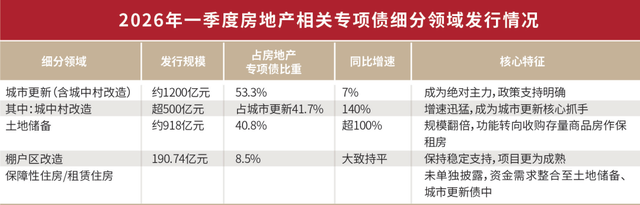 2026年一季度,政府专项债发行呈现“靠前发力、结构优化”的鲜明特征。数据显示,一季度新增专项债发行1.16万亿元,同比增长20.8%,发行进度达全年额度的26.4%。其中房地产相关专项债发行2250亿元,同比大幅增长42%,在同期新增专项债中占比19.4%。 作为连接财政政策与房地产市场稳定的关键纽带,地方政府专项债发行规模、结构变化及资金投向,清晰映射出当前“化解风险、保障民生、盘活存量”的房地产政策核心逻辑,并将对市场预期与相关产业链产生深远影响。 专项债发行靠前发力、结构优化 2026年一季度,全国地方政府专项债券发行总额为23710亿元,与2025年同期相比小幅下降2.5%。尽管发行总额略有回落,但仍处于历史高位,体现了财政政策“稳投资”的定力。 从季度环比来看,2026年一季度发行规模较2025年四季度的11964.34亿元大幅增长98.17%,呈现出显著的“靠前发力”特征。一方面源于2026年提前下达的新增债务限额较2025年增加了约3500亿元,为一季度的集中发行提供了充足的额度空间;另一方面,专项债券“自审自发”试点范围的扩大以及“债贷联动”等机制的优化,也进一步简化了发行流程,提升了发行效率。 一个值得关注的结构性变化是,一季度专项债发行只数达到420只,较2025年同期的390只增加了30只,单只债券的平均发行规模从2025年的约62.36亿元下降至约56.45亿元。这一现象反映出,地方政府在发行过程中可能更倾向于采用分散化、小规模的发行策略,以更好地匹配具体项目融资需求,并可能有助于平滑未来的偿债现金流压力。 综合来看,2026年一季度专项债发行呈现出“节奏大幅前置、结构精准优化”的鲜明趋势。这背后是多层次政策目标的协同体现。首先,发行总量的高位企稳,直接服务于“稳增长”的宏观目标,确保了对基础设施等关键领域投资的持续支持。其次,发行节奏的前置,是财政政策“靠前发力”要求的具体落实,旨在尽快形成实物工作量,及早发挥对经济的拉动作用。最后,发行结构的优化,则体现了专项债从单纯追求规模扩张向注重资金使用效率和风险防控的转型。 这种结构性优化在资金投向上表现得尤为明显。一季度专项债资金重点投向了市政和产业园区基础设施等领域,该领域获得的资金支持规模达到2343.63亿元,旨在推动产业升级和城市功能提升。同时,用于置换存量隐性债务、化解地方政府债务风险的特殊再融资专项债也发行了1188.96亿元,通过展期、降息等方式有效降低了地方政府的债务成本,增强了财政可持续性。而新增专项债则更加聚焦于新基建、保障性安居工程等既补短板又惠民生的领域,确保了资金的精准滴灌。 房地产成专项债支持重点 数据显示,一季度房地产相关专项债发行规模达2250亿元。从资金投向看,主要聚焦城市更新、城中村改造和闲置土地收储等重点领域,反映出政策工具发力点由增量开发转向存量盘活的鲜明特征。 首先,城市更新与城中村改造成为支持重点。一季度城市更新专项债发行接近1200亿元,占到房地产相关专项债的53.3%。其中城中村改造专项债发行超500亿元,同比激增140%,占城市更新专项债比重超过40%。这一投向变化表明,政策正从过去大规模新建商品房,转向对现有城市空间的优化提升。通过老旧小区和城中村改造,不仅能改善居民居住条件,还能释放存量土地价值,带动相关投资和消费。 其次,土地储备专项债规模倍增。一季度土地储备专项债发行约918亿元,在房地产相关债券中占比40.8%,同比增长超过100%。与以往不同,当前土地储备更多指向“盘活存量”而非“新增征收”。截至3月31日,全国各地公示拟使用专项债收回收购的存量闲置土地超5800宗,总面积超3亿平方米,总金额超7800亿元。这种“政府收储-企业盘活”的模式,既帮助房企处置闲置资产、回笼资金,又为地方政府后续土地供应和项目建设储备资源。 第三,区域集中度凸显战略导向。从地区分布看,经济大省和“自审自发”试点地区发行规模领先。广东一季度发行超400亿元,居全国首位;北京、江苏、山东发行规模均超200亿元。这种区域集中体现了“因城施策”原则,资金优先投向人口净流入、住房矛盾突出、城市更新需求迫切的重点城市,确保资金使用效率。 专项债发行结构及用途揭示出两大关键转向:一是从增量开发转向存量盘活。这与2025年中央持续推进城市更新行动的政策要求高度契合,旨在通过财政资金激活城市存量资产,优化空间结构。二是从单纯的土地征收转向“以储促保”。土地储备专项债规模翻倍,但其核心功能已从传统的“征地—出让”模式,转变为收购存量商品房用作保障性租赁住房。在专项债类别中,原来的保障性租赁住房类别并入城市更新和土地储备相关专项债范畴,这一转变本质上是利用政府信用打通市场库存与保障需求的通道,做到“一石二鸟”:既缓解市场库存压力,又完善住房保障体系。 政策逻辑与市场信号 2026年是“十五五”开局之年,也是构建房地产发展新模式的关键一年。作为重要的政策工具,地方政府专项债发行提速、靠前发力,为积极化解房地产风险、稳定房地产市场释放了积极信号。 首先,它标志着房地产风险化解路径的财政化与制度化。通过专项债这一透明、规范的融资工具支持城中村改造、收购存量商品房,将部分市场化房企的存量资产与债务压力,有序转化为地方政府