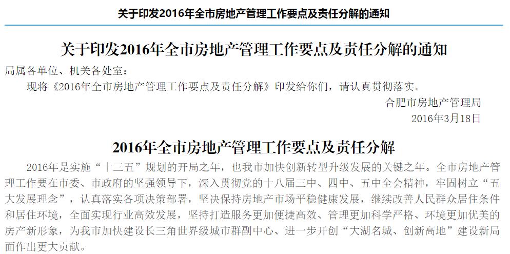 | 2016年合肥房地产管理工作要点(全文) |